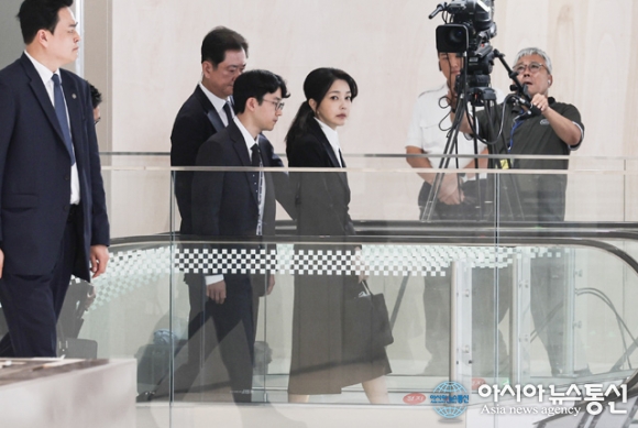 윤석열 전 대통령의 부인 김건희 여사가 서울 종로구에 마련된 특검 사무실에 첫 조사를 받기 위해 피의자 신분으로 출석 하고 있다./아시아뉴스통신 DB [아시아뉴스통신=윤자희 기자] 김건희 여사 관련 의혹을 수사하는 민중기 특별검사팀이 양평 공흥지구 개발 특혜 의혹과 관련해 김 여사 어머니 최은수씨의 옛.. 2025-08-23