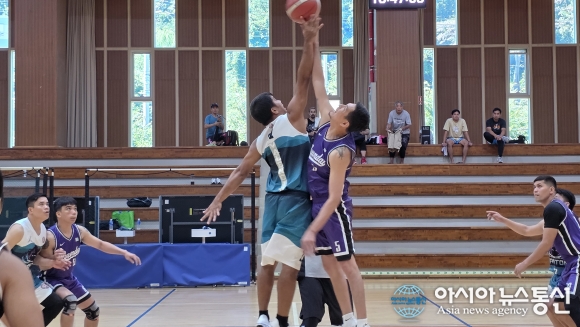 【사진제공=정훈평생교육원】17일(일) 온산문화체육센터에서 진행된 2025 제4회 장애인-비장애인-다문화 어깨동무농구대회에서 다문화팀이 점퍼볼을 하고 있다. [아시아뉴스통신=주영곤 기자] 17일(일) 온산문화체육센터에서 2025년 제4회 어깨동무대회 가 200명이 참여한 진행되었다. 제3회 어깨동무대회는 울산장.. 2025-08-18