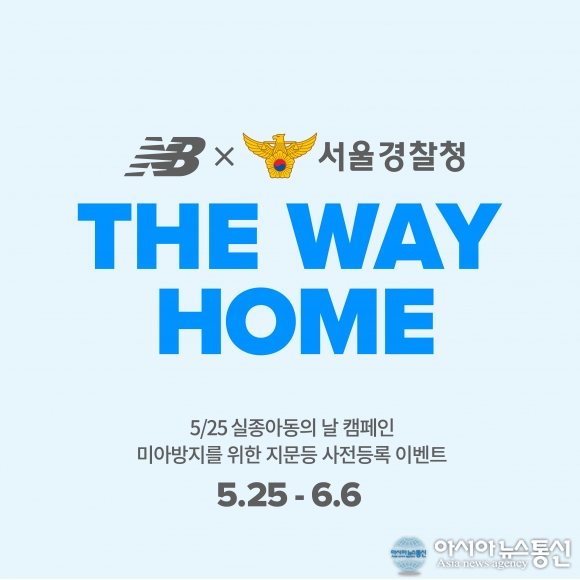 이랜드 뉴발란스 키즈, 실종 아동의 날 맞아 미아방지 캠페인 진행./아시아뉴스통신 DB [아시아뉴스통신=윤자희 기자] 이랜드월드가 운영하는 아동복 브랜드 ‘뉴발란스 키즈’가 지난 25일 실종아동의 날을 맞아 경찰청과 함께 ‘지문 등 사전등록’ 장려 캠페인인 ‘The Way Home’을 진행했다. .. 2022-05-29