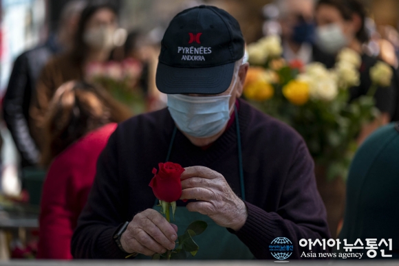 스페인 바르셀로나 거리 장미 꽃을 들고 있는 노인의 모습/(신화통신/아시아뉴스통신DB) [아시아뉴스통신=장희연 기자] 스페인 코로나19, 10일 오전 9시 기준으로 확진자는 11,181,510명이고, 사망자는 100,992명이다. 전일대비 코로나19 확진자 45,085명, 사망자 418명이 증가했다. gywhqh159@naver.com 2022-03-10