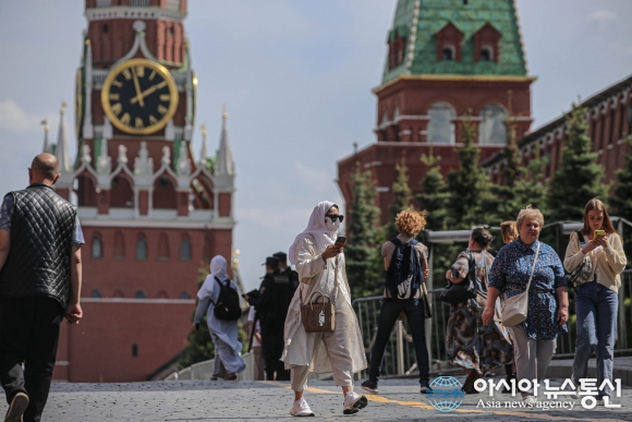 러시아 모스크바에서 사람들이 마스크를 쓰고 길을 걷고 있는 모습/(신화통신/아시아뉴스통신DB) [아시아뉴스통신=장희연 기자] 러시아 코로나19, 10일 오전 9시 기준으로 확진자는 16,893,631명이고, 사망자는 351,124명이다. 전일대비 코로나19 확진자 123,356명, 사망자 1,271명이 증가했다. gywhqh159@naver.com 2022-03-10