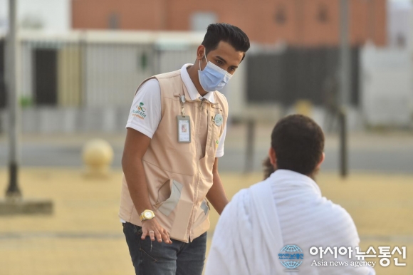 사우디아라비아 메카에서 핫즈(Hajj) 순례자와 보건요원의 모습./(사진제공=사우디아라비아 보건부 SNS) [아시아뉴스통신=장희연 기자] 사우디아라비아 코로나19, 10일 오전 9시 기준으로 확진자는 748,121명이고, 사망자는 9,013명이다. 전일대비 코로나19 확진자 406명, 사망자 4명이 증가했다. gywhqh159@naver.com 2022-03-10