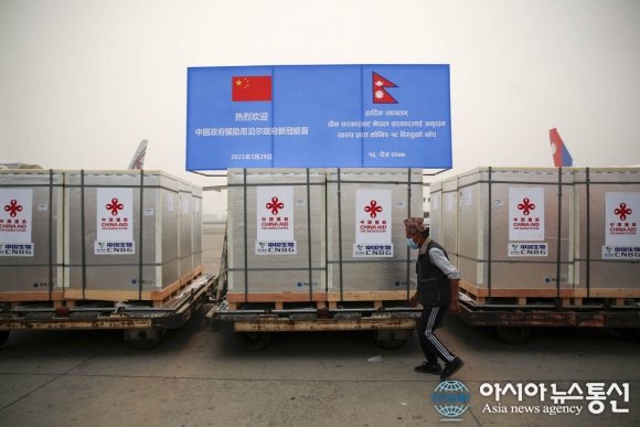 네팔 카트만두 트리부반 국제공항에 코로나19 백신이 도착한 모습/(신화통신/아시아뉴스통신DB) [아시아뉴스통신=장희연 기자] 네팔 코로나19, 10일 오전 9시 기준으로 확진자는 977,709명이고, 사망자는 11,949명이다. 전일대비 코로나19 확진자 142명, 사망자 1명이 증가했다. gywhqh159@naver.com 2022-03-10