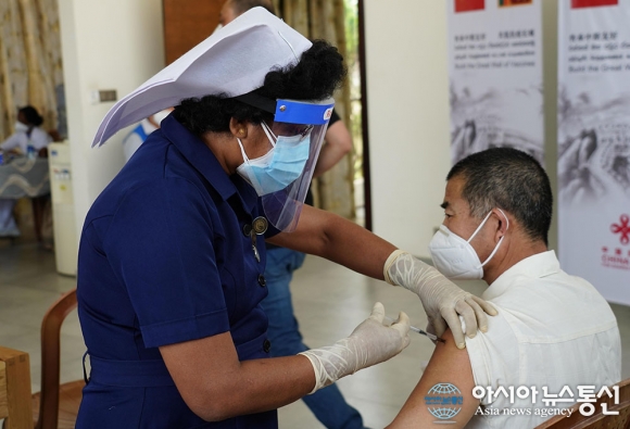 스리랑카 콜롬보 항구 도시 예방 접종소에서 한 남성이 코로나19 백신 접종을 하고 있는 모습 /(신화통신/아시아뉴스통신DB) [아시아뉴스통신=장희연 기자] 스리랑카 코로나19, 10일 오전 9시 기준으로 확진자는 654,336명이고, 사망자는 16,361명이다. 전일대비 코로나19 확진자 3,534명, 사망자 22명이 증가했다. gywhqh159.. 2022-03-10