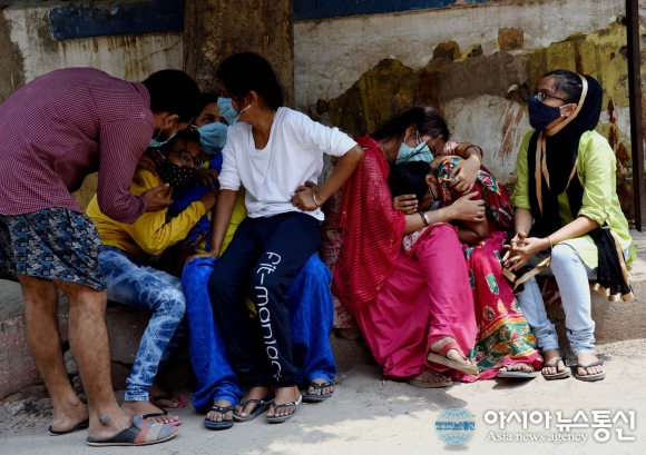 인도 바트나의 한 병원에서 코로나로 가족을 잃은 사람들이 슬퍼하고 있는 모습/(신화통신/아시아뉴스통신DB) [아시아뉴스통신=장희연 기자] 인도 코로나19, 10일 오전 9시 기준으로 확진자는 42,975,883명이고, 사망자는 515,355명이다. 전일대비 코로나19 확진자 4,575명, 사망자 145명이 증가했다. gywhqh159@naver.com 2022-03-10