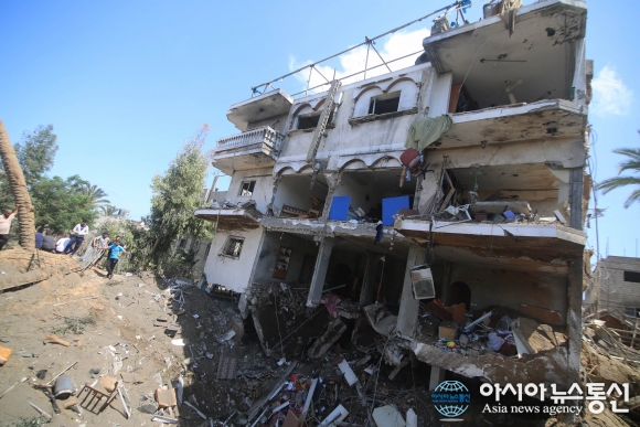 이스라엘의 폭격으로 팔레스타인 가자 지구의 건물이 파괴된 모슶 /(신화통신/아시아뉴스통신DB) [아시아뉴스통신=장희연 기자] 이스라엘 코로나19, 10일 오전 9시 기준으로 확진자는 3,690,974명이고, 사망자는 10,322명이다. 전일대비 코로나19 확진자 10,342명, 사망자 5명이 증가했다. gywhqh159@naver.com 2022-03-10