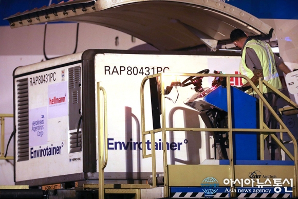 아르헨티나 에세사 국제공항에 코로나백신이 도착한 모습 /(신화통신/아시아뉴스통신DB) [아시아뉴스통신=장희연 기자] 아르헨티나 코로나19, 8일 오전 9시 기준으로 확진자는 8,942,888명이고, 사망자는 126,842명이다. 전일대비 코로나19 확진자 6,286명, 사망자 74명이 증가했다. gywhqh159@naver.com 2022-03-08