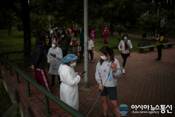 시민들이 콜롬비아 산타페데보고타에서 코로나19 검사를 받고 있다. 3차 대유행을 막기 위해 산타페데보고타는 이날 전국민 격리를 실시하고, 불필요한 유동을 금지한다.(신화통신/아시아뉴스통신DB) [아시아뉴스통신=장희연 기자] 콜롬비아 코로나19, 8일 오전 9시 기준으로 확진자는 6,072,656명이고, 사망자는 139,12.. 2022-03-08