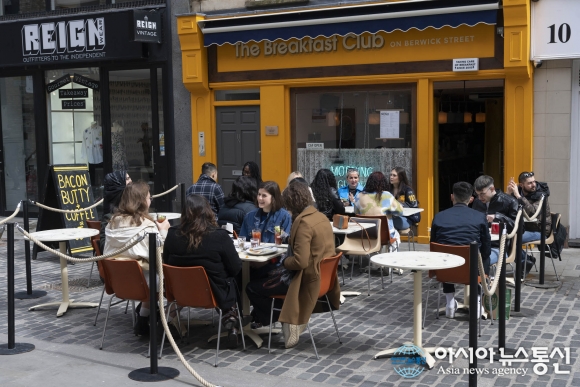 영국 런던의 한 야외 식당에서 시민들이 음식을 먹고 있는 모습 /(신화통신/아시아뉴스통신DB) [아시아뉴스통신=장희연 기자] 영국 코로나19, 8일 오전 9시 기준으로 확진자는 19,298,535명이고, 사망자는 162,292명이다. 전일대비 코로나19 확진자 126,436명, 사망자 140명이 증가했다. gywhqh159@naver.com 2022-03-08
