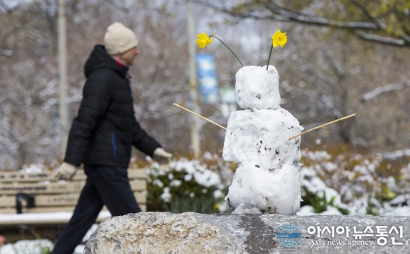 캐나다 토론토에 눈사람과 행인의 모습 /(신화통신/아시아뉴스통신DB) [아시아뉴스통신=장희연 기자] 캐나다 코로나19, 8일 오전 9시 기준으로 확진자는 3,344,302명이고, 사망자는 37,080명이다. 전일대비 코로나19 확진자 8,012명, 사망자 53명이 증가했다. gywhqh159@naver.com 2022-03-08