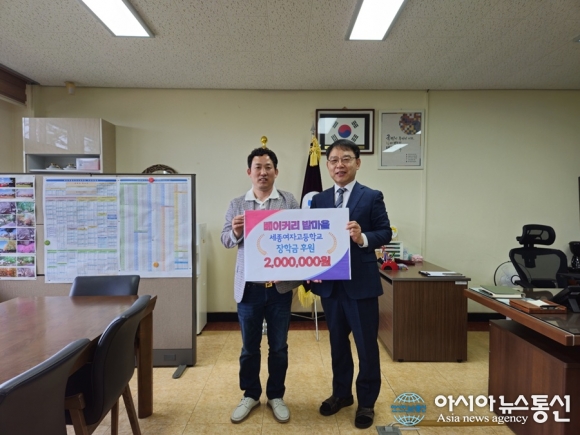 [아시아뉴스통신=박희석 기자] 세종여자고등학교(이하 세종여고)는 베이커리 밤마을 김인범 대표가 학생들을 위해 장학금을 전달..