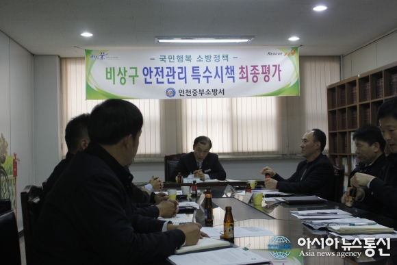 지난 10일 인천중부소방서가 3층 회의실에서 대형화재 취약대상 비상구 안전관리 대책에 대한 평가회의를 진행하고 있다.(사진제공=인천중부소방서)