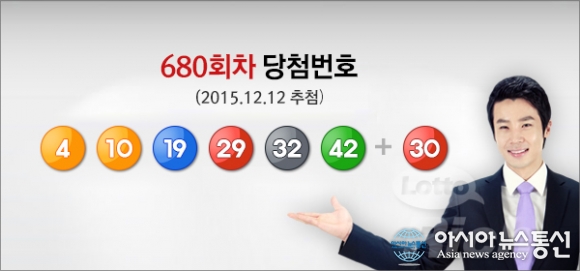 제680회 나눔로또 추첨이 12월 12일 실시됐다. 나눔로또에서 발표한 로또 680회 당첨번호는 ‘4, 10, 19, 29, 32, 42 보너스 30’이다. 6개 번호가 일..