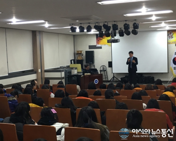 지난 11일 포항시학교운영위원장협의회가 경북 포항여자전자고등학교에서 고3학생 120여명을 대상으로 ‘2015년 행복한 포항, 행복한 학교현장 만들기’ 인성교육을 실시하고 있다.(사진제공=포항시청)