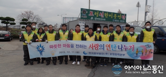 한국중부발전(주) 보령화력본부(본부장 유성종)자원봉사단원 25여명은 지난 11일 보령연탄은행을 방문, 사랑의 연탄 1만장을 기부하고 주교면과 오천면 등 2가구에게도 각각 1000장씩 연탄을 직접 배달하는 등 사랑의 나눔 활동을 펼치고 있..