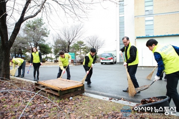 11일 김영박 경북 김천시청 감사홍보담당관은 부서 내 직원 15명과 함께 어모면 소재 신애병원 내 심신미약 장애인들의 복귀시설인 '사랑의 집'을 방문해 시설 안팎 환경정비 일환으로 청소를 하고 있다. 이날 위문품도 함께 전달됐..