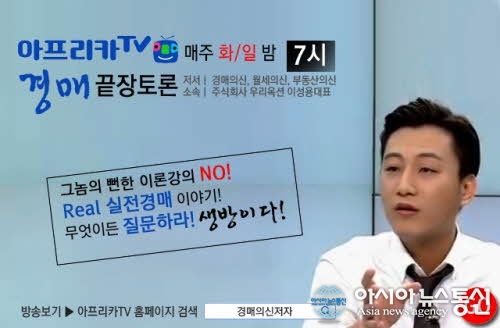 ‘경매의 신’을 포함해 시리드 저서를 3권을 내며 상당한 인지도를 갖추고 있는 우리옥션의 이성용 대표가 아프리카TV 방송을 통한 부동산경매 ‘끝장토..