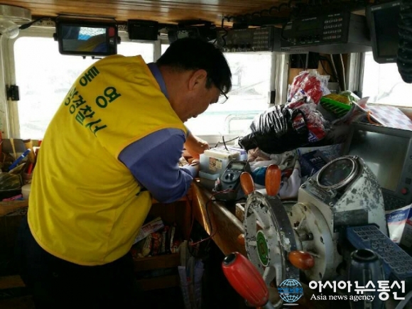경남 통영해양경비안전서(해경)의 찾아가는 경정비 서비스가 어민들로부터 호응을 얻고 있다.
