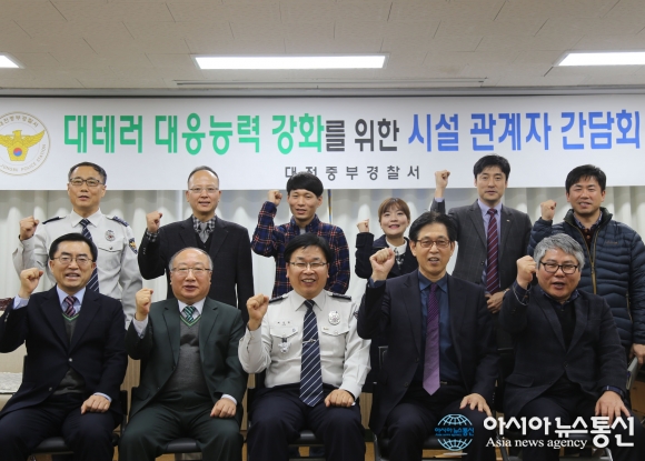 10일 대전중부경찰서는 사랑홀에서 대테러 대비와 테러 취약 시설간의 상호 공조 체계 구축 마련을 위한 간담회를 실시했다.(사진제공=대전중부경찰서)