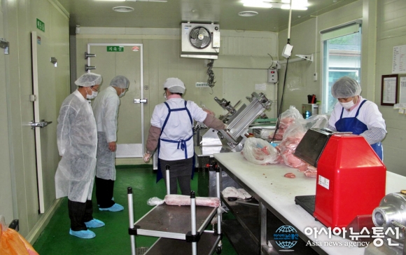 지난 10일 경북 영덕교육지원청 학교급식 점검단이 학교급식 공급업체를 방문해 작업장 시설과 식재료 보관·관리 및 위생 실태를 점검하고 있다.(사진제공=영덕교육청)