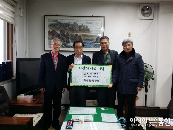 지난 10일 장수읍 재전향우회(회장 류계선)는 연말연시를 맞아 어려운 이웃을 위해 써달라며 장수읍에 이웃돕기 성금 300만원을 기탁했다.(사진제공=장수군청)