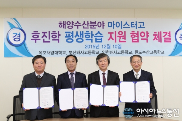 10일 목포해양대학교는 부산해사고교, 인천해사고교, 완도수산고교와 교육업무협약을 체결했다.(사진제공=목포해양대학교)