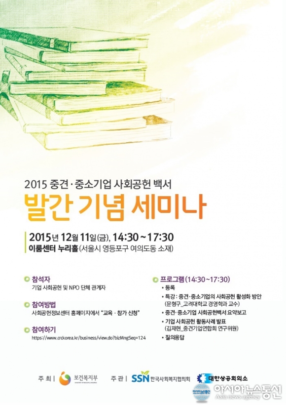 11일 열리는 2015 중견․중소기업 사회공헌 백서 발간기념 세미나 안내 포스터.(사진제공=한국사회복지협의회 대외홍보실)