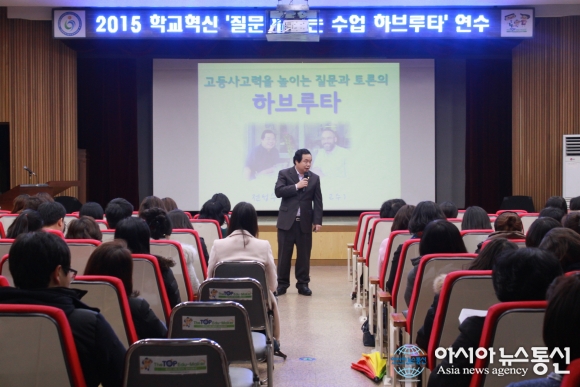 10일 인천동부교육지원청이 학교혁신을 위한 교원 전문성 신장을 위한 질문이 있는 수업 하브루타 연수를 관내 초‧중학교 희망교사 184명을 대상으로 동부교육지원청 대회의실에서 진행하고 있다.(사진제공=인천동부교육지원청)