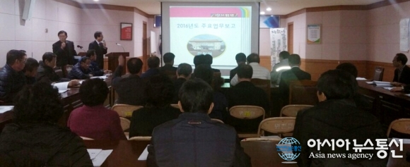 9일 경남 거창군 위천면사무소에서 ‘2016년도 업무계획 보고회’가 열리고 있다.(사진제공=거창군청)