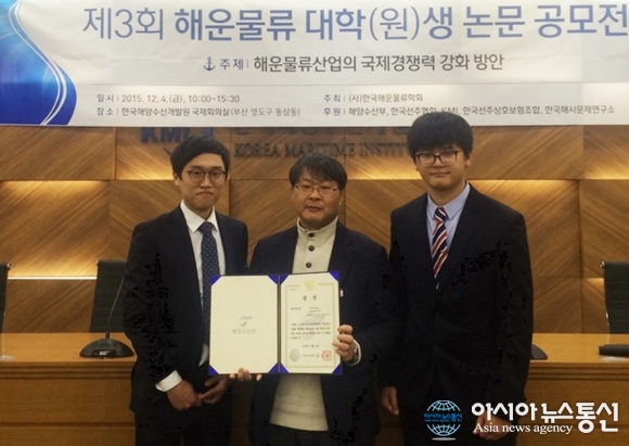 ‘제3회 해운물류 대학(원)생 논문공모전’에서 최우수상인 해양수산부 장관상을 수상한 경남대학교 e-비즈니스학과 혜움e 동아리 소속 류재관∙최성만 학생.(사진제공=경남대)