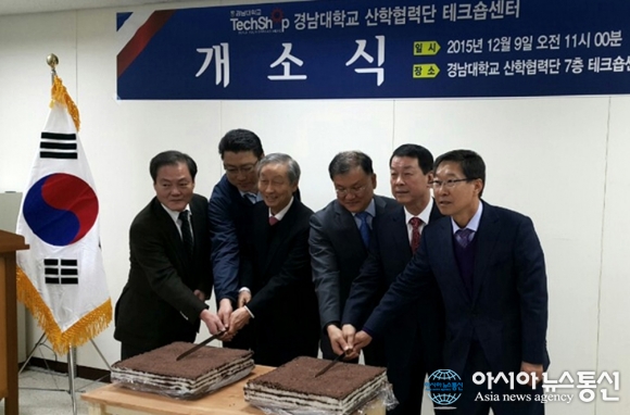 지난 9일 경남대학교 산학협력관 7층에서 3D 프린터 시제품 제작과 교육을 위해 설립된 ‘테크숍센터’ 개소식이 열린 가운데 손진우 경남대 교학부총장과 최상기 경남창조경제혁신센터장, 권영훈 테크숍센터장, 기업 임직원 등이 ..