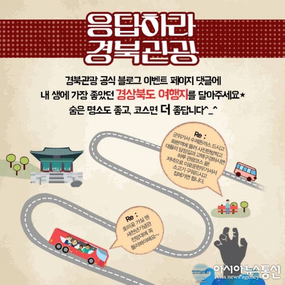 경북도관광공사(사장 김대유)는 경북의 새로운 관광지와 아직 알려지지 않은 숨은 관광지를 찾기 위해 나만의 여행코스를 소개하는‘응답하라 경북관광..