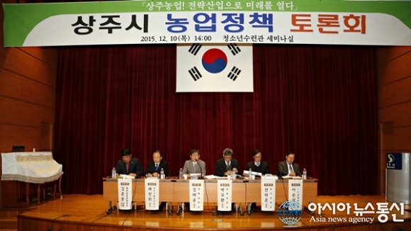 10일 경북 상주 청소년수련관 세미나실에서 열린 '상주시 농업정책 토론회'에 참석한 패널들이 발표와 질의.응답을 하고 있다.(사진제공=상주시청)
