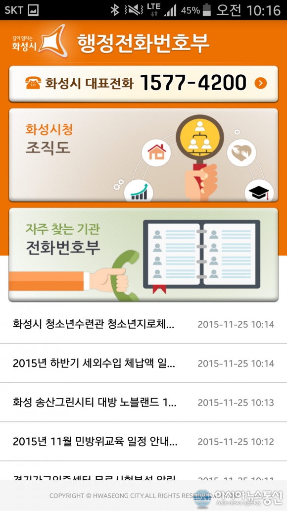 '화성시행정전화번호' 앱 캡쳐화면.(사진제공=화성시청)