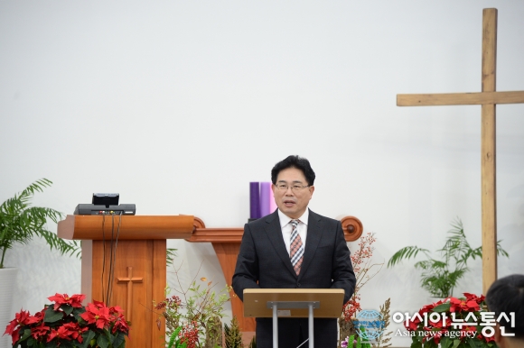 25일 청양군 기독교연합회(회장 김종태 청양교회 담임목사)는 화재로 전소된 운곡교회 사택 건립 성금 3793만원을 전달했다. 사진은 김종태 청양지방 감리사./아시아뉴스통신=이승주 기자