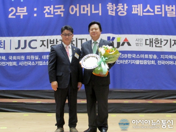 25일 강기윤 의원(오른쪽)이 JJC지방자치TV, 대한기자협회 등으로부터 ‘대한민국 의정대상’을 수상하고 있다.(사진제공=강기윤 의원 사무소)
