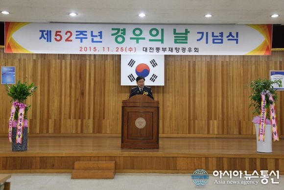 25일 대전중부경찰서는 누리홀에서‘제52회 경우의 날’기념행사를 개최했다. 사진은 최성환 중부서장이 모두발언을 하고 있는 모습.(사진제공=대전중부경찰서)