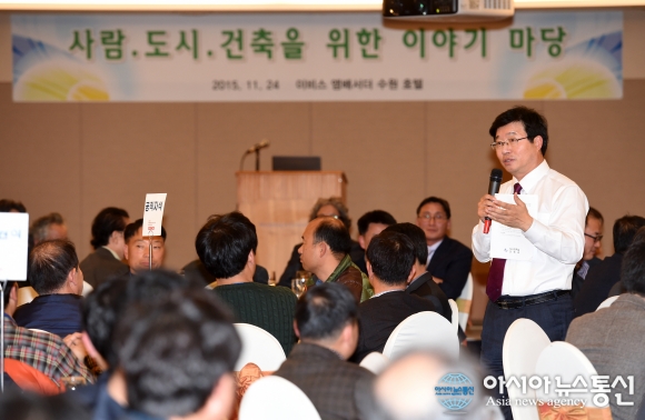 24일 오후 수원이비스 앰버서더호텔 6층 리스홀에서 수원지역건축사회와도시건축발전 간담회가 열렸다.(사진제공=수원시청)