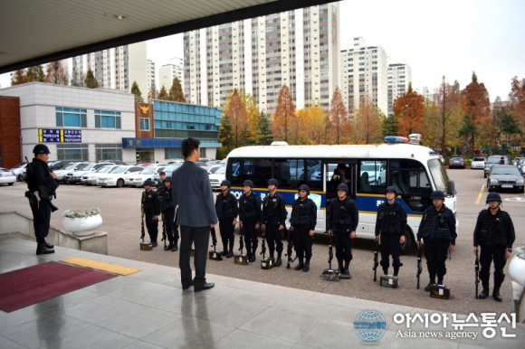 지난 18일 인천연수경찰서는 경찰서 자체 대테러 대응 능력 향상을 위해 대테러부대 출동태세 점검을 실시하고 있다.(사진제공=인천연수경찰서)