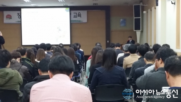 지난 18일 인천시 중구는 월디관 회의실에서 중구청 직원 200여명을 대상으로 장애인인식 개선 등을 위한 장애인차별금지 및 인권교육을 진행하고 있다.(사진제공=인천중구청)
