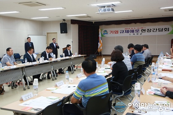 지난 9월 충북 옥천군이 개최한 기업규제애로 현장 간담회.(사진제공=옥천군청)