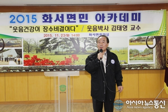 23일 김용배 경북 상주 화서면장이 아카데미 시작에 앞서 인삿말을 통해 취지를 설명하고 있다./아시아뉴스통신=김철희 기자
