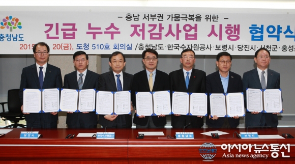 20일 충남도청 대회의실에서 도와 케이워터, 도내 서부 5개 시군이 '긴급 누수 저감 사업 시행 협약'을 체결했다.(사진제공=충남도청)