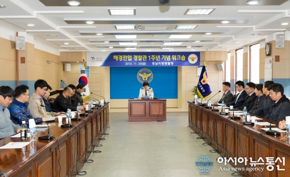 20일 오전 경남경찰청 2층 회의실에서 김수희 경남경찰청 2부장 주재로 ‘해경전입 경찰관 1주년 기념 워크숍’이 열리고 있다.(사진제공=경남경찰청)