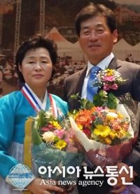 '한국유기농업대회' 유기농인 유통인상을 수상한 최영수·도외숙 부부.(사진제공=고령군청)