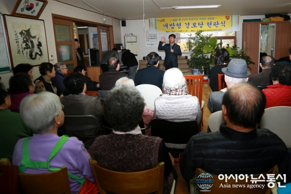 19일 서울 성북구가 경로당을 지역사회에 개방해 지역주민이 소통하고 공유하는 공간으로 활성화하기 위해 길음1동 2단지 경로당에서 ‘개방형 경로당’현판식을 개최했다.(사진제공=성북구청)