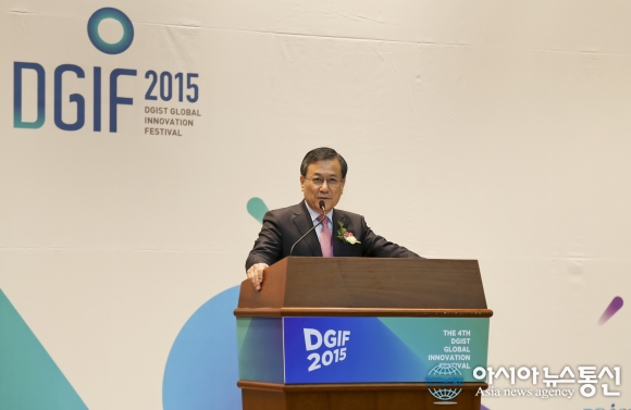 19일 DGIST에서 열린 DGIF 2015 개막식에서 신성철 DGIST 총장이 환영사를 하고 있다.(사진제공=DGIST)