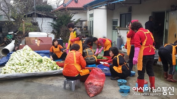 20일 충북 보은군 회인면자원봉사회(회장 임순자)는 사랑의 김장김치를 담아 홀몸노인과 소년소녀가장 등 어려운 이웃 30여가구에 전달했다.(사진제공=보은군청)