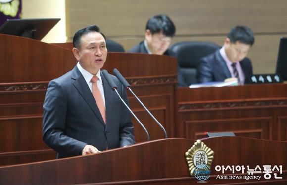 구본영 천안시장이 20일 열린 천안시의회 제189회 정례회에서 시정연설을 하고 있다.(사진제공=천안시청)