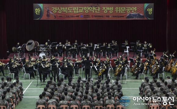 19일 오후 50사단 강철체육관에서 장병 및 군인가족 등 1000여명이 참석한 가운데 경북도립교향악단이 클래식 연주를 하고 있다.(사진제공=50사단)